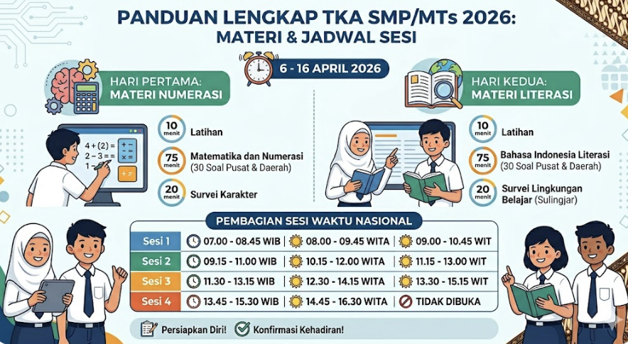 Hari Ini TKA SMP/MTs 2026 Dimulai! Simak Jadwal Sesi 1-4, Durasi, dan Dua Materi Utamanya