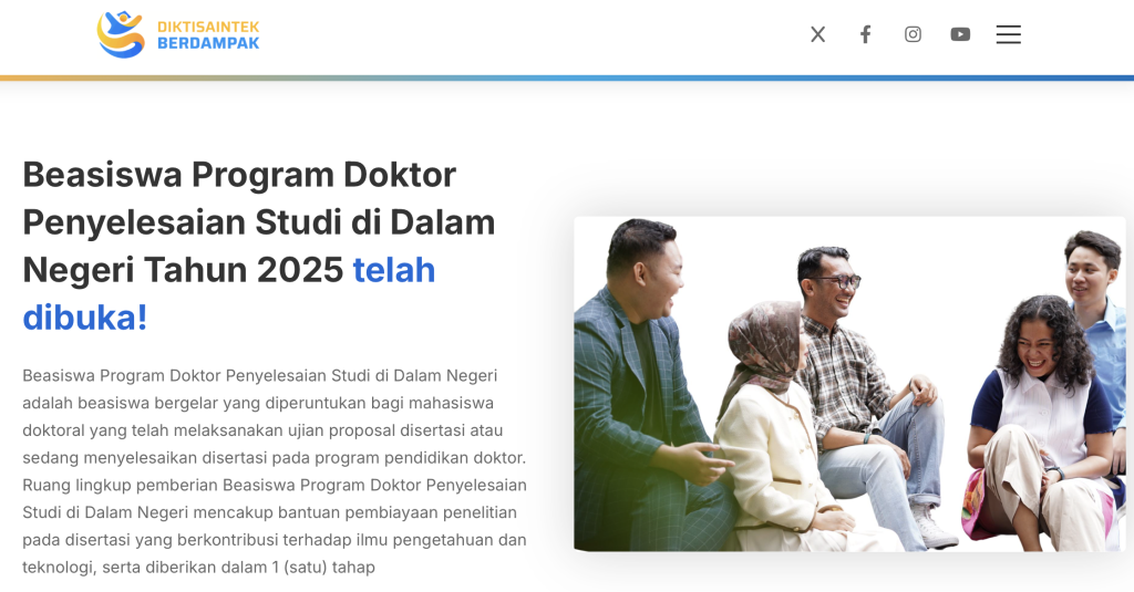 Kabar Gembira: Beasiswa Program Doktor Penyelesaian Studi Dalam Negeri 2025 Resmi Dibuka!