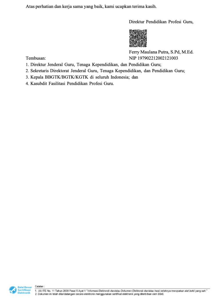 Surat Informasi Perpanjangan Waktu Seleksi Administrasi PPG bagi Guru Tertentu Periode 3 Tahun 2025