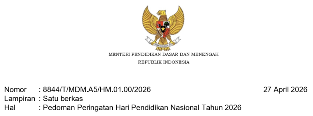 GuruBelajar.com — Pemerintah melalui Kementerian Pendidikan Dasar dan Menengah resmi menetapkan arah peringatan Hari Pendidikan Nasional (Hardiknas) yang jatuh pada 2 Mei 2026. Tahun ini, perayaan tidak hanya terpusat pada satu hari, melainkan diperluas sepanjang bulan Mei yang dicanangkan sebagai Bulan Pendidikan Nasional.